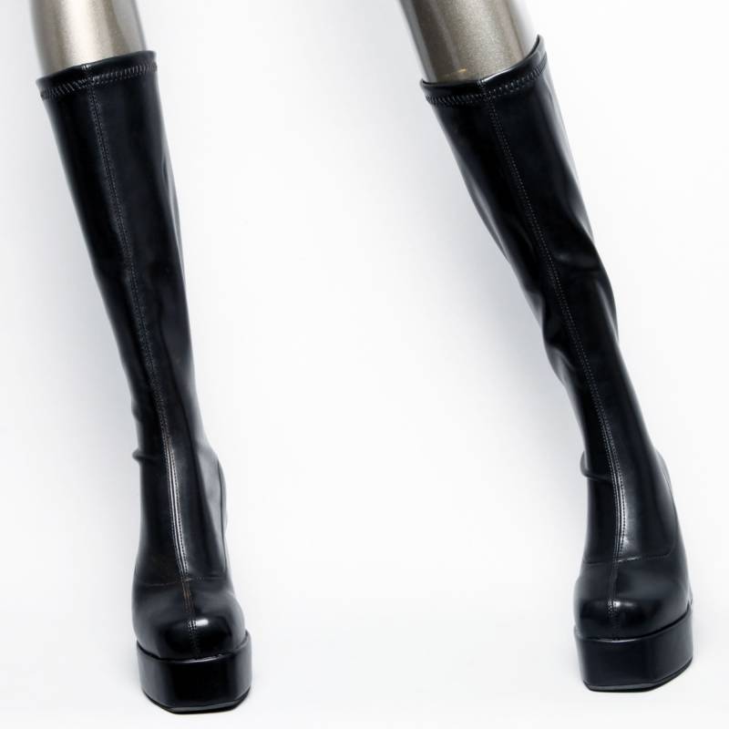Faites sensation avec cette botte noire Fetish à la hauteur de 46cm, talon compris.