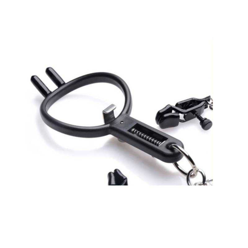 Les pinces pour les tétons sont liées au baillon par une chaîne en métal de 32cm.