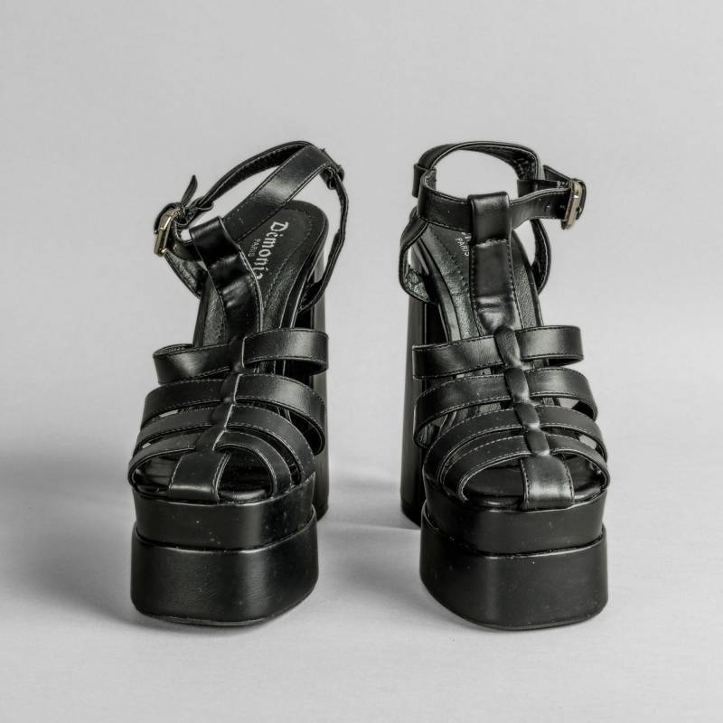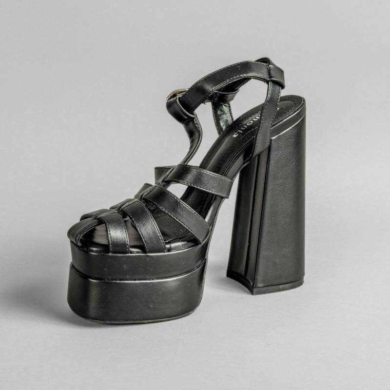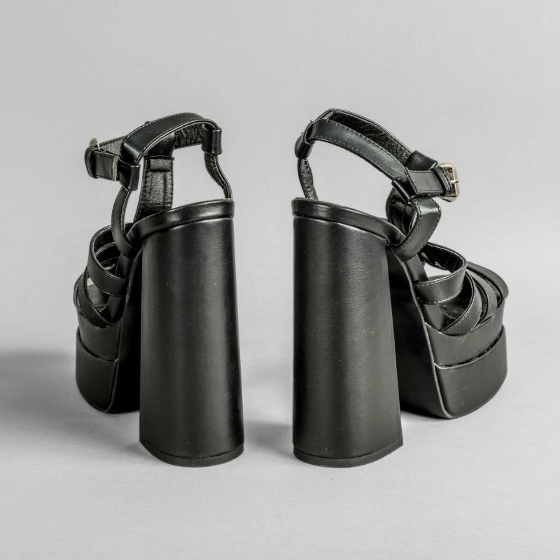 Adoptez un look gothique percutant avec ces sandales à talons conçues pour un impact visuel unique :