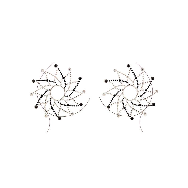 bijoux de corps pour tétons façon fleur en strass noir et argenté.
