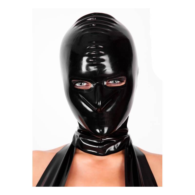 Cagoule en latex noir, idéal pour immobiliser le ou la soumise.