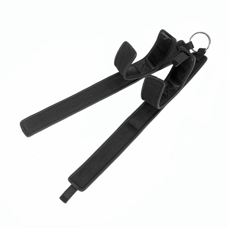 Ceinture de bondage en nylon sur l'extérieur et cuir molletonné noir sur l'intérieur. Cousu sur cette ceinture, 2 menottes également en nylon sur l'extérieur et cuir molletonné noir sur l'intérieur, contraindront votre partenaire.