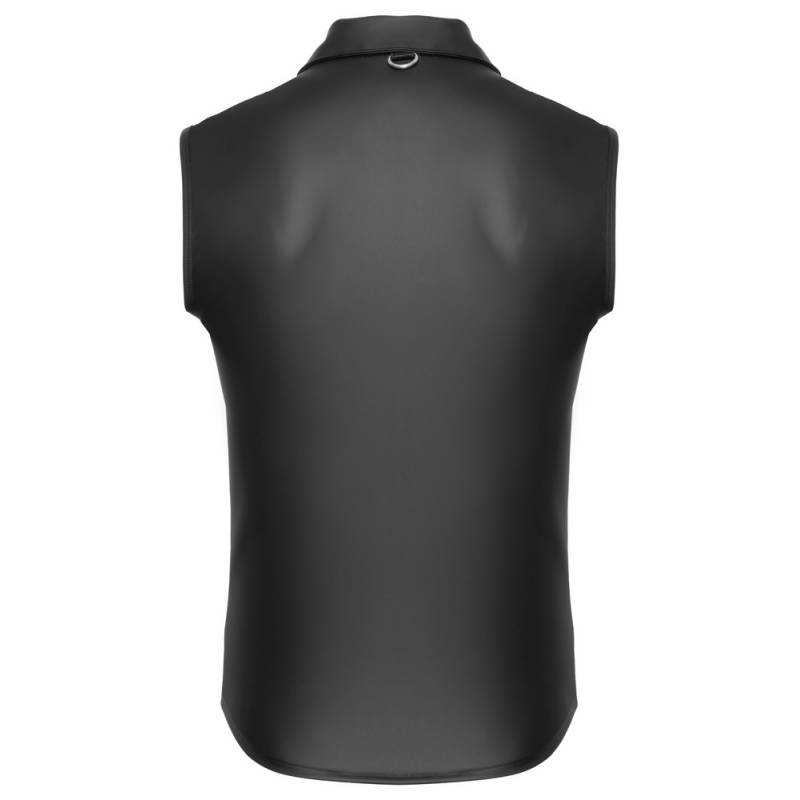 Cette chemise sans manches en wetlook impose une allure autoritaire et sensuelle. Sa coupe ajustée souligne la musculature tandis que le noir mat absorbe la lumière, donnant au corps une prestance magnétique. Une pièce idéale pour les dominant·es, performeur·ses ou amateur·rices d’esthétique fetish sobre et percutante.