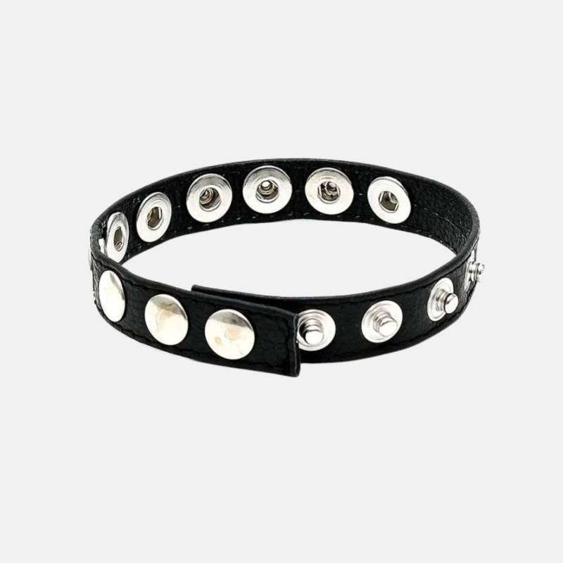 Ce cockring cuir réglable multi-pressions offre une précision unique grâce à sa ligne complète de boutons de pression.