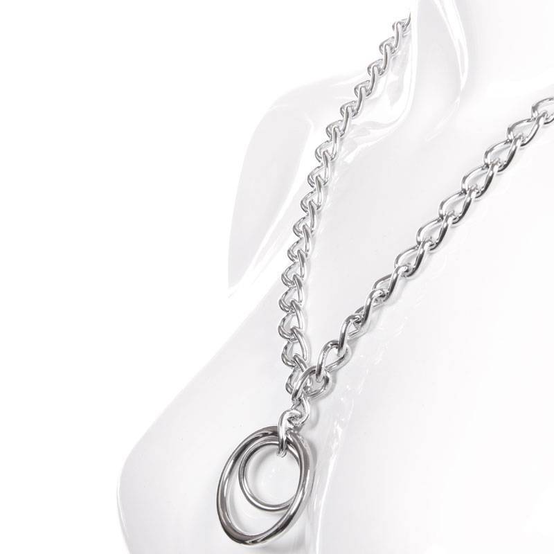 Collier chaîne métallique avec 2 anneaux en pendentif , grosse maille.