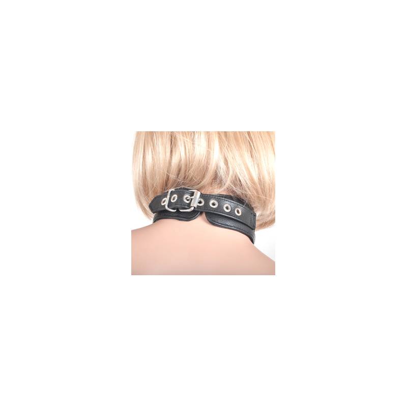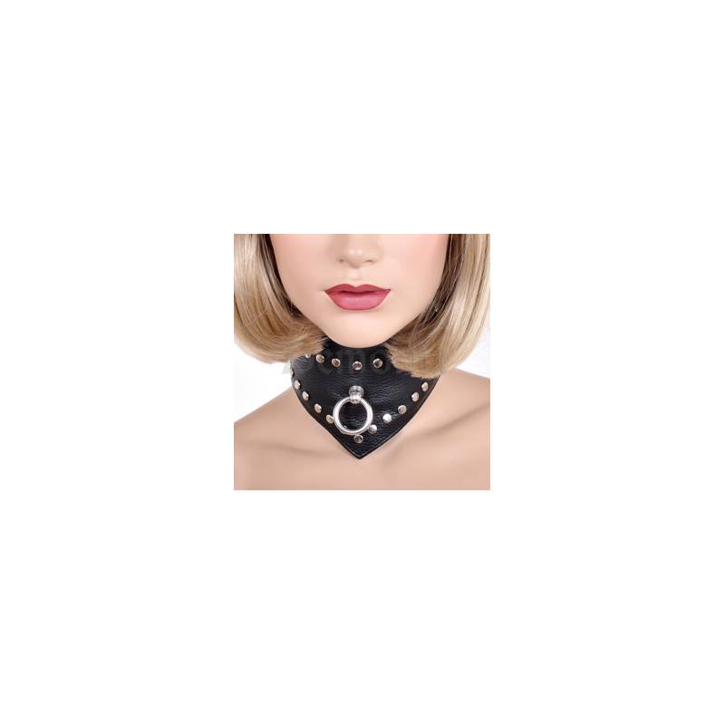 Magnifique collier en cuir avec un bel anneau et des rivets, taille Femme.