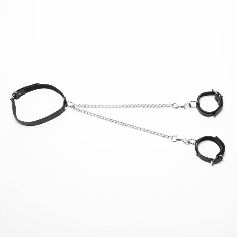 Laissez parler vos fantasmes SM avec ce collier relié à des menottes par une jolie chaine.
