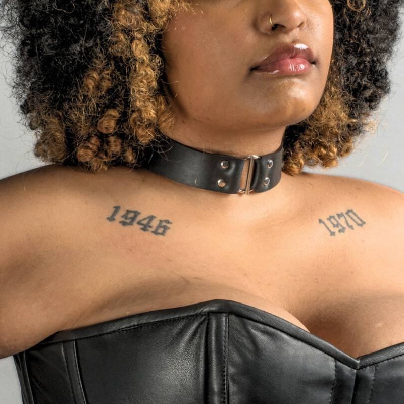 Fabriqué artisanalement à partir de matériaux surcyclés, ce choker reflète une démarche écoresponsable. Parfait pour les adeptes de mode alternative ou Fetish qui souhaitent affirmer leurs valeurs sans compromettre leur style.