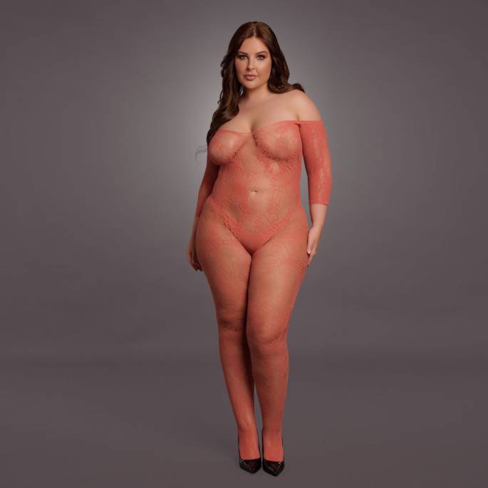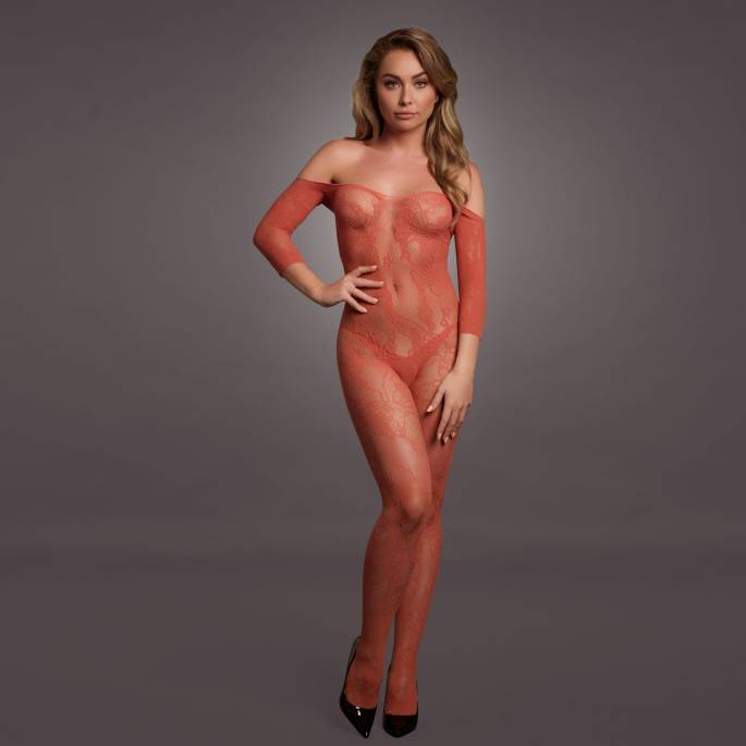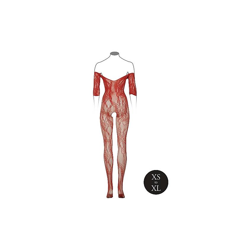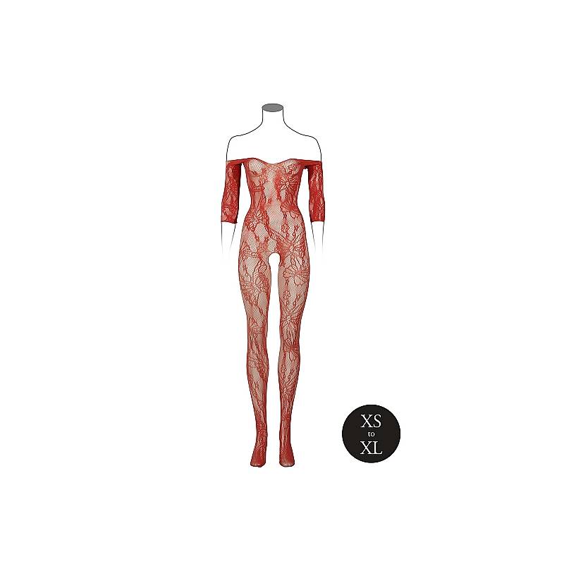 Combinaison à manches longues avec motif dentelle et entrejambe ouvert. Peut être porté sur l'épaule ou épaules dénudées. Le tissu super extensible s'adapte à votre taille .Existe en plusieurs couleurs et 2 tailles.
