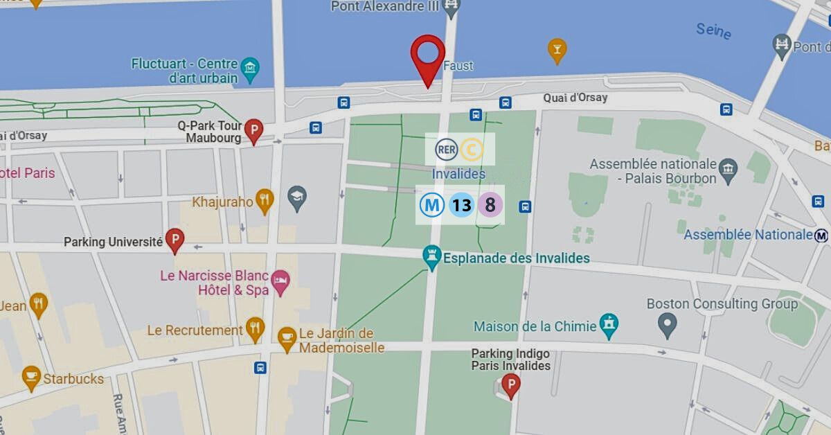Rendez-vous au FAUST, Rive Gauche, Pont Alexandre III, 75007 Paris.