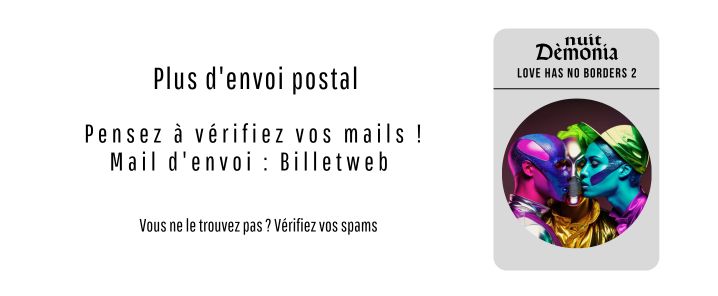 Nouveauté : Les places vous seront expédiées par e-mail grâce à la mise en place de nos billets dématérialisés. L'expéditeur de vos billets est : Billetweb. Vous ne les trouvez pas ? Vérifiez vos spams...