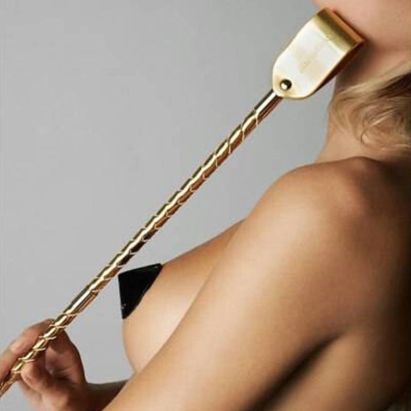 Moderne et aux notes luxueuses, cette cravache se pare de bijoux dorés et dispose d'une poignée joliment torsadée. A la fois érotique et chic, cet accessoire coquin est un incontournable qui saura pimenter vos moments de sensualité.