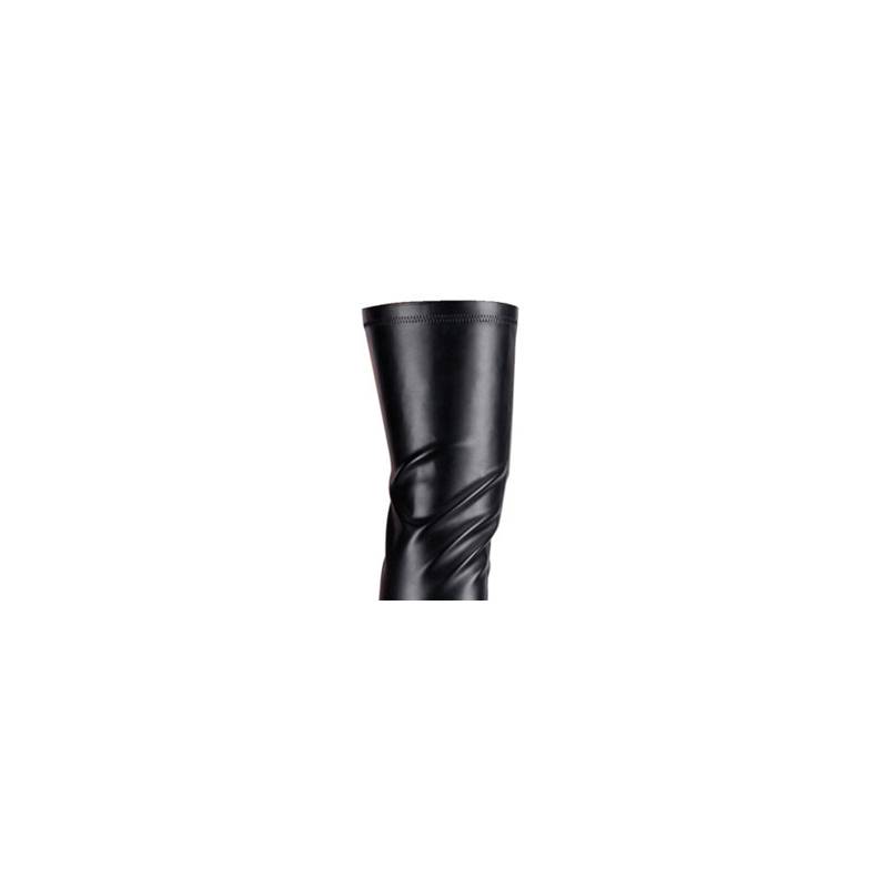Cuissardes en simili cuir noir compensées (6,5cm) avec talon de 16cm.