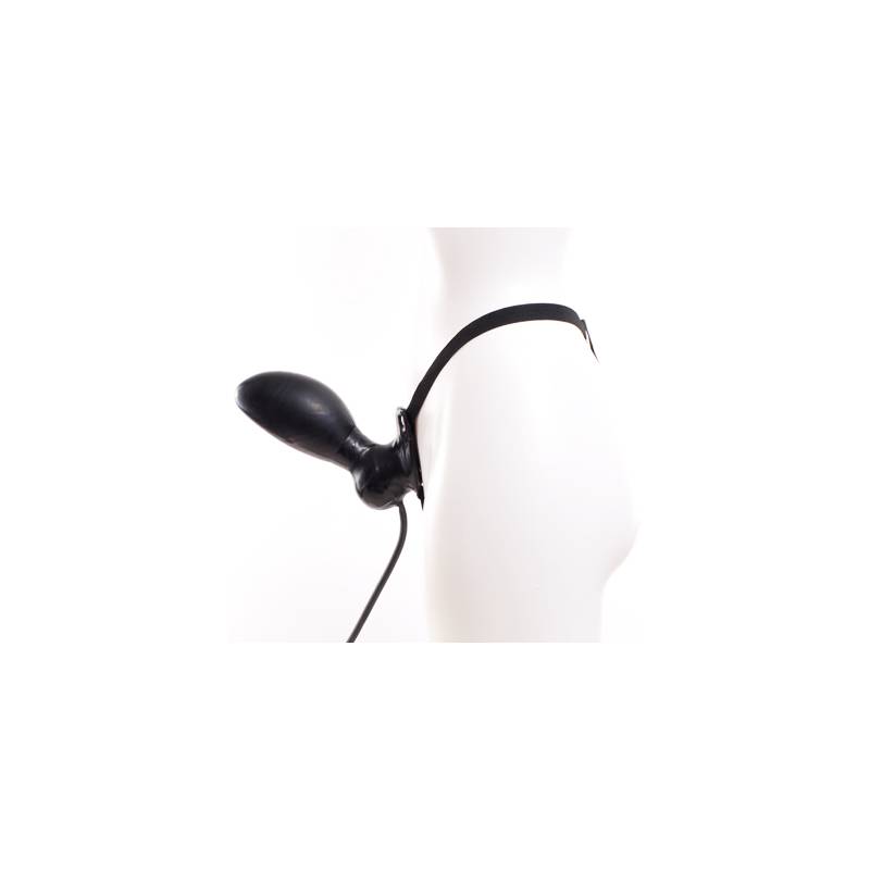 Gode ceinture gonflable de couleur noir avec testicules. Veines apparentes pour une stimulation et un réalisme plus fort et vanne de sortie avec poire pour le gonflage.