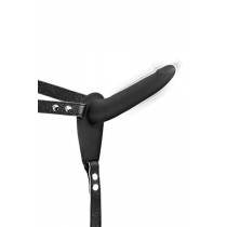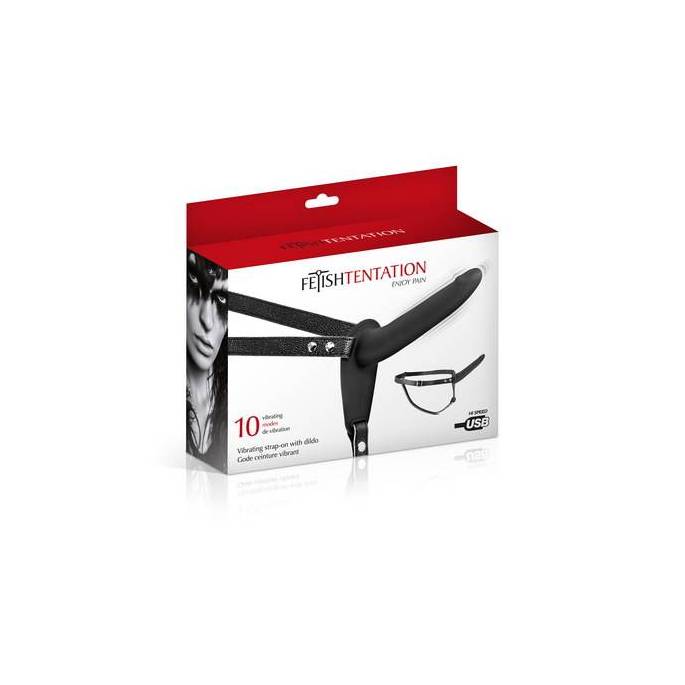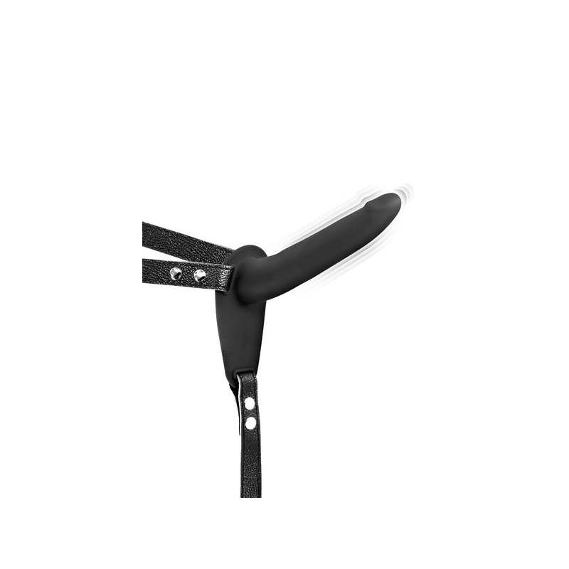 Gode ceinture vibrant couleur noir avec un gode externe à la texture très soft.