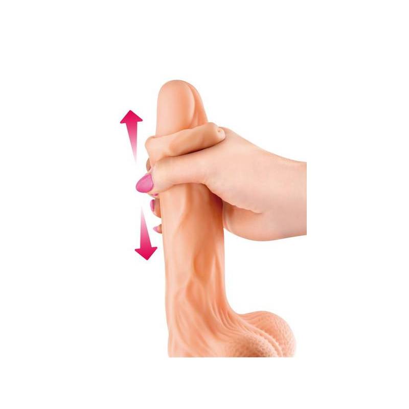 Gode réaliste veiné conçu pour permettre une simulation de masturbation tout en caressant les testicules grâce à des billes internes.