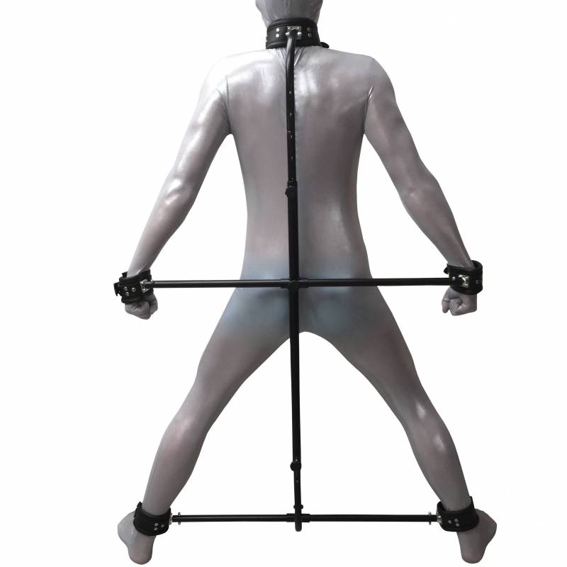 - Une première principale avec pas de vis de façon à régler et maintenir la barre pour les poignets et permettre d'insérer les deux barres courbées pour le cou et les chevilles.