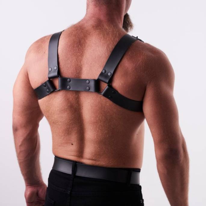 Ce harnais de poitrine puissant et robuste est fabriqué en cuir de haute qualité et associé à de grands anneaux noirs, des boucles, des rivets doubles côtés et une finition de qualité absolue, ce sera l'ultime "Must Have" que vous ne retirerez jamais. Enveloppez les larges ceintures de 4 cm de large et de 3 mm d'épaisseur autour de votre poitrine et portez le harnais en toute occasion qui vous plaît. De nombreuses options d'ajustement vous permettront d'obtenir la coupe parfaite tout en présentant simultanément votre poitrine de la meilleure façon possible. Les ceintures en cuir de haute qualité combinées aux pièces métalliques noires détaillées procureront une sensation absolument fantastique sur votre peau. Soyez assuré qu'avec ce harnais de poitrine, vous serez l'homme, alors laissez libre cours à votre imagination.