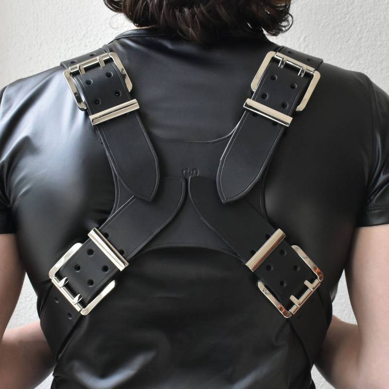 Imaginé pour ceux qui recherchent à la fois sophistication et utilité, ce harnais en cuir véritable offre une expérience de port confortable tout en rehaussant votre tenue. Les pochettes avant sont idéales pour garder vos petits objets personnels à portée de main, sans compromettre votre style. Que ce soit pour une soirée spéciale, un événement exclusif ou simplement pour ajouter une touche unique à votre look quotidien, ce harnais est l'accessoire parfait.