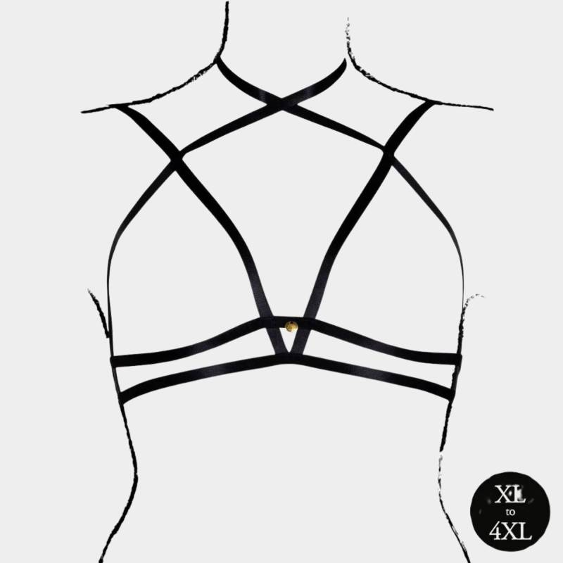Harnais body à lanières ouvert et audacieux, qui encadre les courbes et révèle juste ce qu’il faut de peau. Bretelles ouvertes, jarretelles intégrées et ajustements multiples pour sublimer chaque silhouette. • Lanières réglables • Ouverture poitrine • Jarretelles intégrées • Matière 55% Polyester / 45% Fulflex Rubber • Tailles XS-XL / XL-4XL