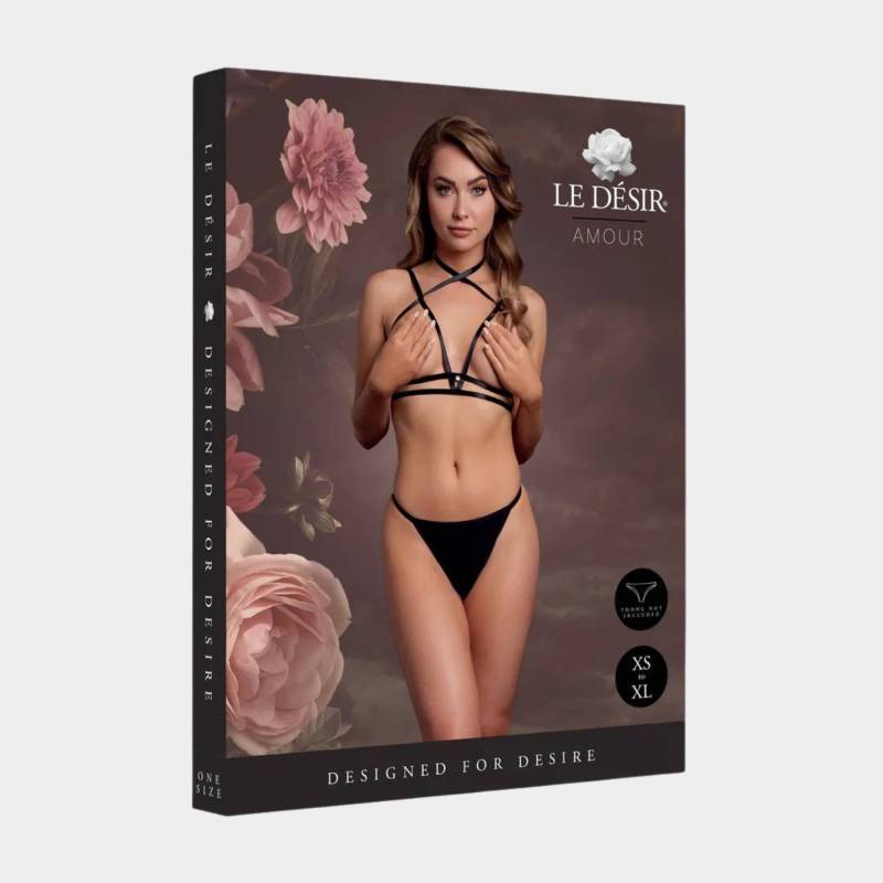 Ce harnais triangle ouvre la porte à une sensualité assumée. Lanières élégantes, cou souligné, coupe ouverte : une pièce pensée pour amplifier la confiance et réveiller le désir. Il épouse la silhouette, souligne les lignes naturelles du torse et invite à jouer avec son image dans un esprit audacieux et affirmé.