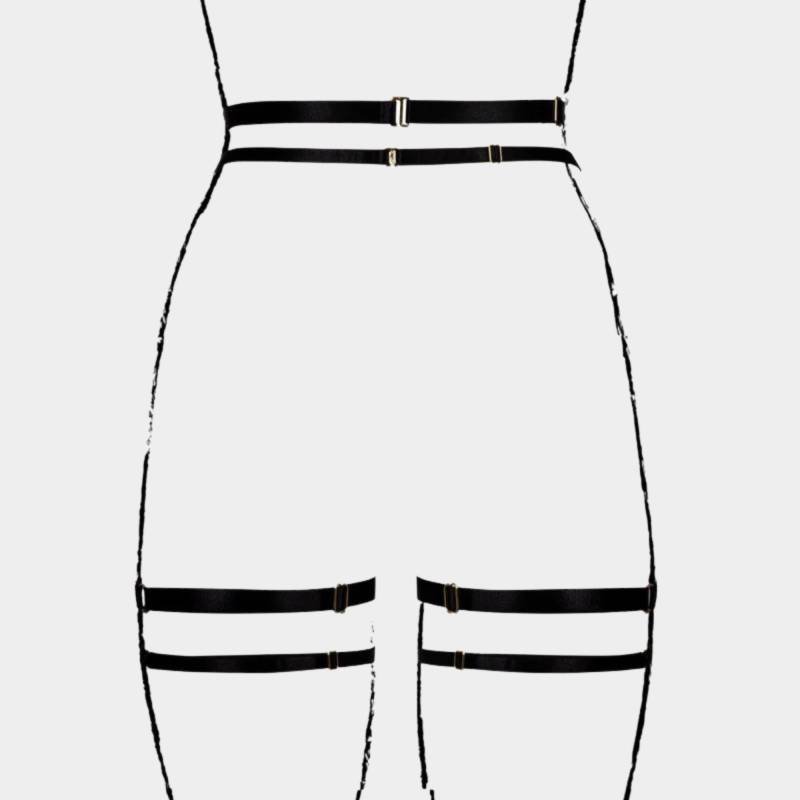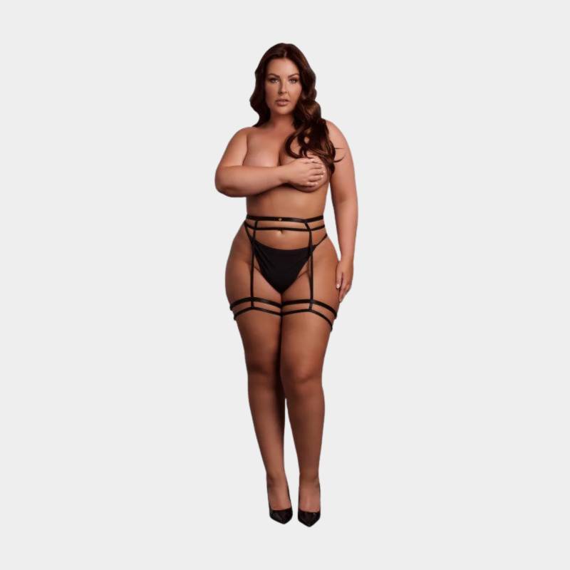 Harnais body à lanières ouvert et audacieux, qui encadre les courbes et révèle juste ce qu’il faut de peau. Bretelles ouvertes, jarretelles intégrées et ajustements multiples pour sublimer chaque silhouette. • Lanières réglables • Ouverture poitrine • Jarretelles intégrées • Matière 55% Polyester / 45% Fulflex Rubber • Tailles XS-XL / XL-4XL