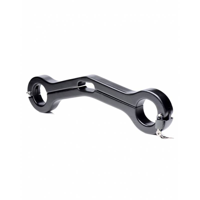 Ce humbler en bois noir fonctionne comme un ballstretcher où vous pouvez menotter les mains et verrouiller avec un cadenas.