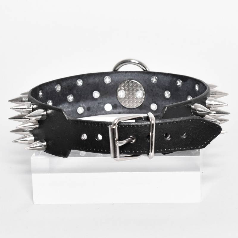 Sa largeur est de 3cm, il muni de trois rangées de pointes lui donnant un certain poids et d'un joli anneau en inox.