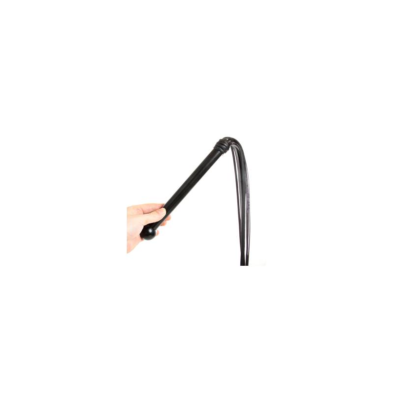 Martinet avec manche et boule en bois noir comprenant 11 lanières en cuir dur.
