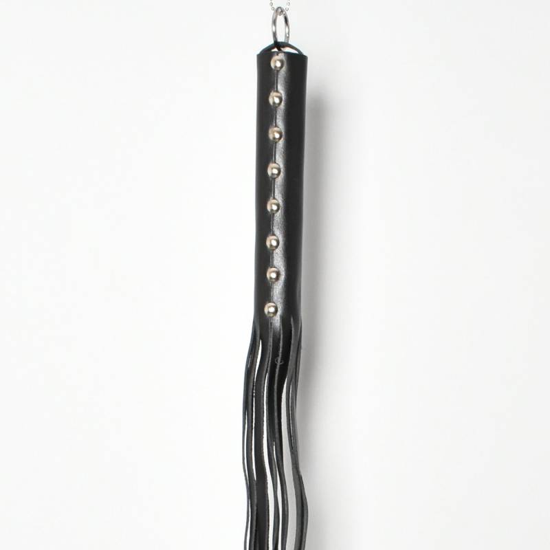 Plongez dans le monde du BDSM avec notre martinet à 12 lanières en cuir dur. Mesurant 69 cm au total, avec un manche de 18 cm orné de rivets à motif, cet accessoire offre un contrôle absolu.