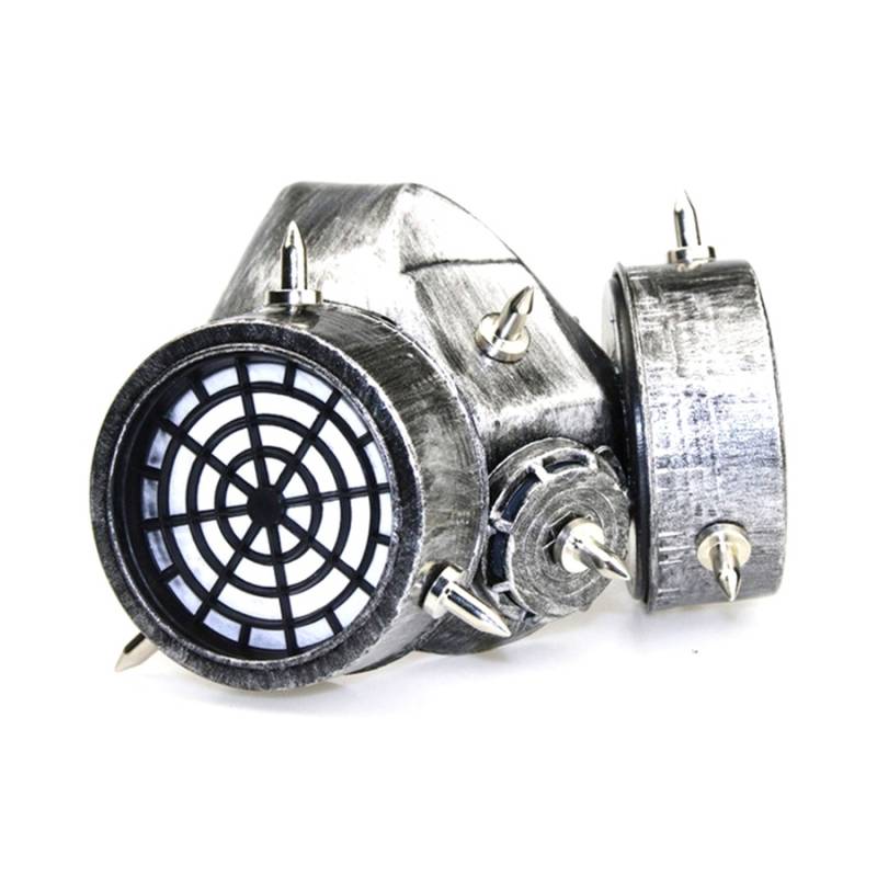 Cet ensemble masque à gaz + lunettes silver est conçu pour transformer instantanément votre allure en un look industrial fetish, sombre et spectaculaire. Avec ses pointes métalliques et ses filtres décoratifs, il crée un style post-apocalyptique captivant, parfait pour les soirées BDSM, les performances ou les jeux de rôle intense.