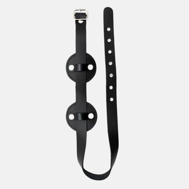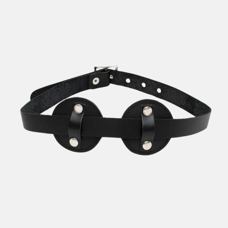 Ce masque aveuglant rond en cuir véritable est conçu pour priver totalement la vue et accentuer l’état de dépendance, d’abandon ou de soumission consentie.