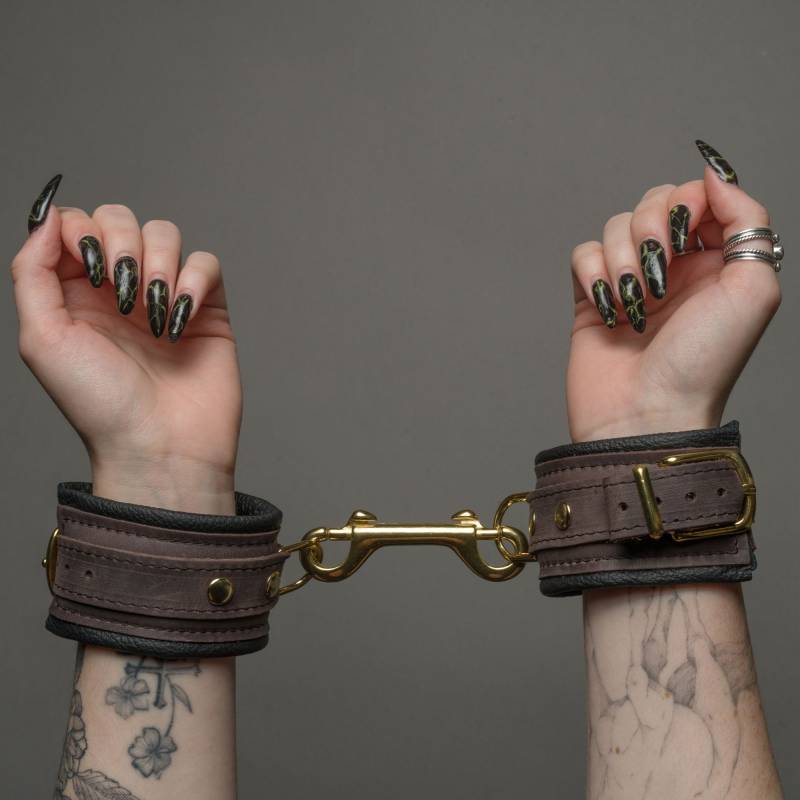 Plongez dans un univers de sensations intenses avec notre paire de menottes en cuir marron.