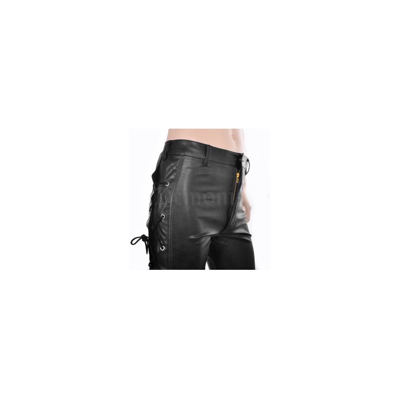 Pantalon en simili cuir avec lacets cotés tout du long.