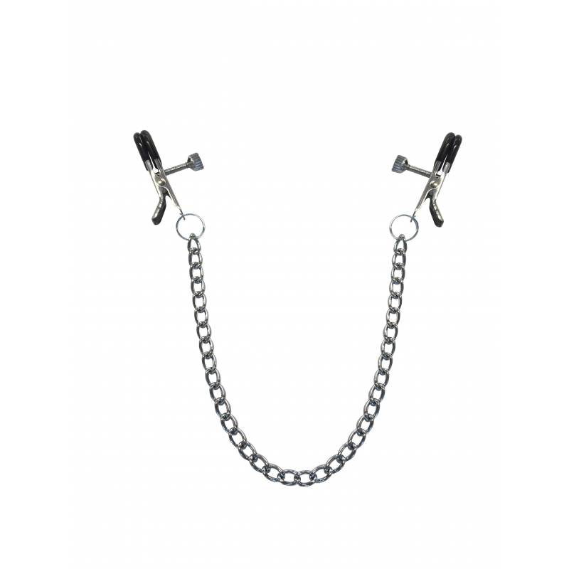 Pinces à seins larges et réglables reliées par une belle chaine en acier.