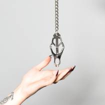 Glissez ces pinces sur votre soumis.e et observez leur souffle s'accélérer au rythme de vos gestes. La froideur métallique contre la peau nue ajoute une note de contraste sensuel, parfaite pour intensifier vos jeux de domination.