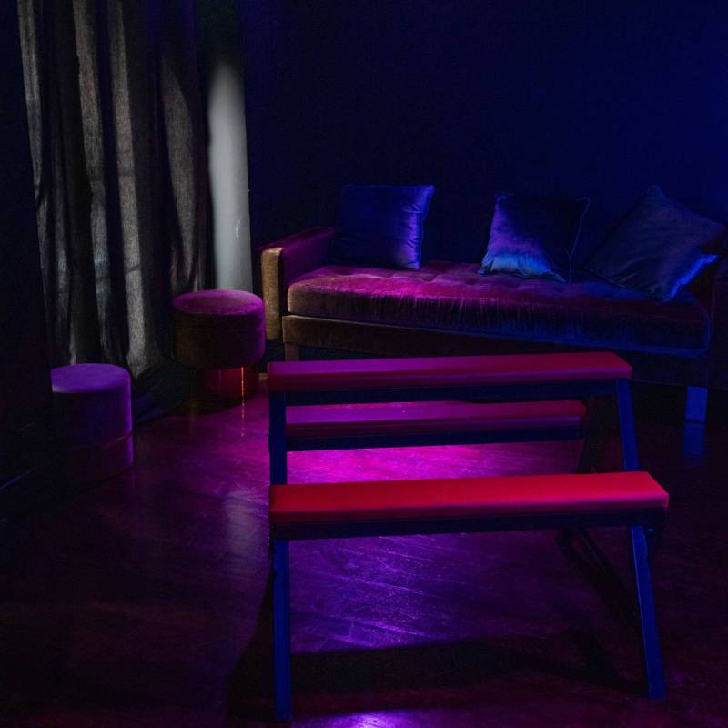 Espace de jeu et matériel BDSM complet : Libère tes désirs avec notre sélection complète de mobilier BDSM et d'accessoires. Des portants seront mis à disposition pour la pratique du Shibari, ainsi que des tapis spécialement aménagés au sol, offrant un confort optimal pour les explorations.