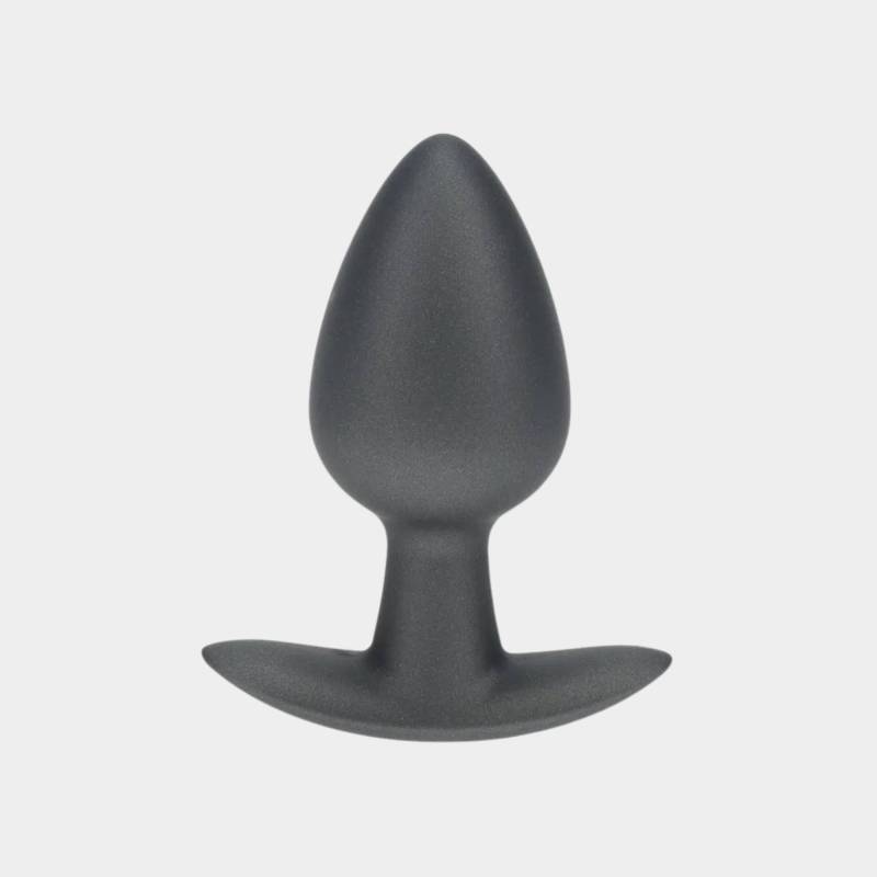 Plug anal medium en silicone noir métallisé, idéal pour explorer une stimulation anale maîtrisée. Sa forme fuselée glisse aisément et sa base évasée garantit une utilisation sûre.
