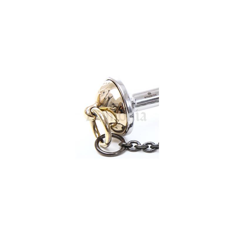 Appuyez la pointe lubrifiée du Rosebud sur la pastille anale et poussez doucement. En quelques secondes la partie charnue du plug est avalée. Ne reste visible que la partie décorative qui sert aussi de butée.
