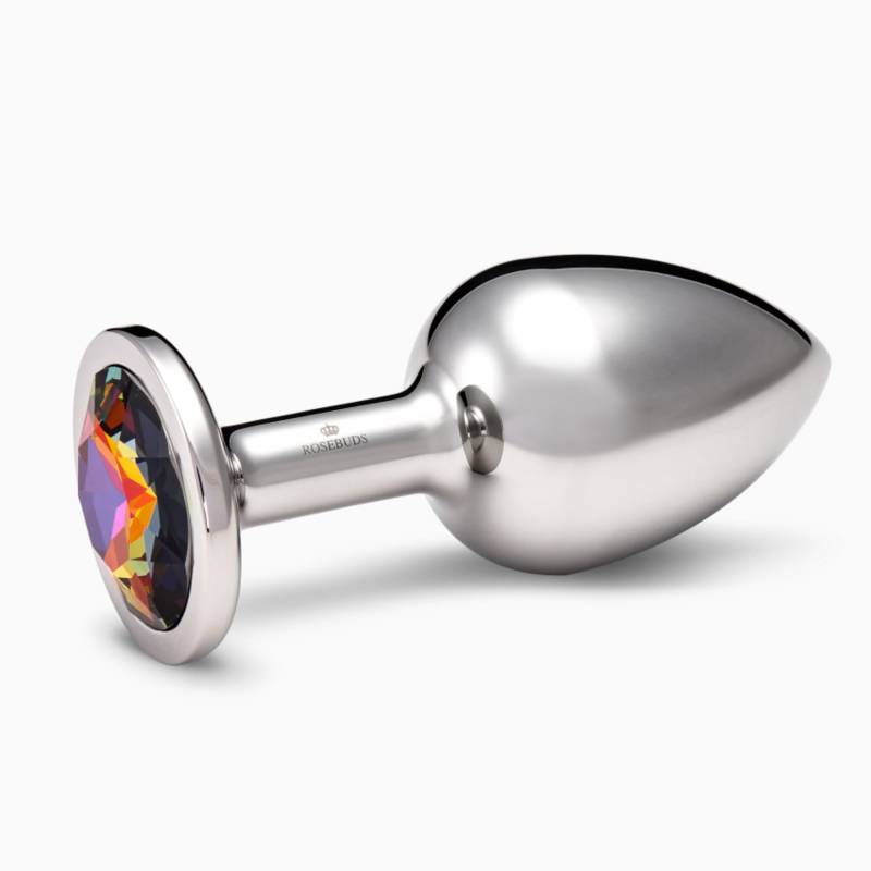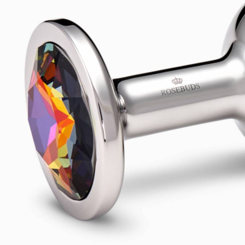 Bijoux anal de la marque "Rosebud", en Acier inoxydable et pierre Swarovski "Volcano" à son extrémité.