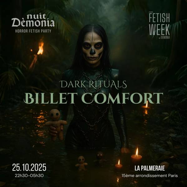 25.10.2025 | 22h30 – 5h30 La Palmeraie – Paris 15e Ici, ton Fetish devient culte.Soirée Fetish & BDSM Donjon BDSM, performances & dancefloor Village Stands & espace safeLe billet Final Call – Dernier tarif pour la Nuit Dèmonia Dernière chance de sceller ton pacte IMPORTANT :Code de conduite strict Dresscode Fetish obligatoire (bas de...