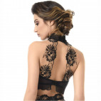 Pourvu d'une basque en résille noire transparente en forme de vagues, ainsi qu'au cou.