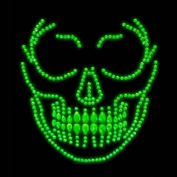 Bijoux de visage adhésif Crâne Glow in the dark.