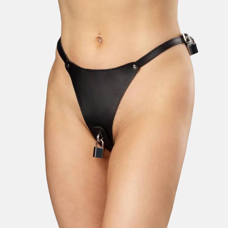 Ce string de chasteté en cuir véritable est une pièce emblématique du BDSM de contrôle.