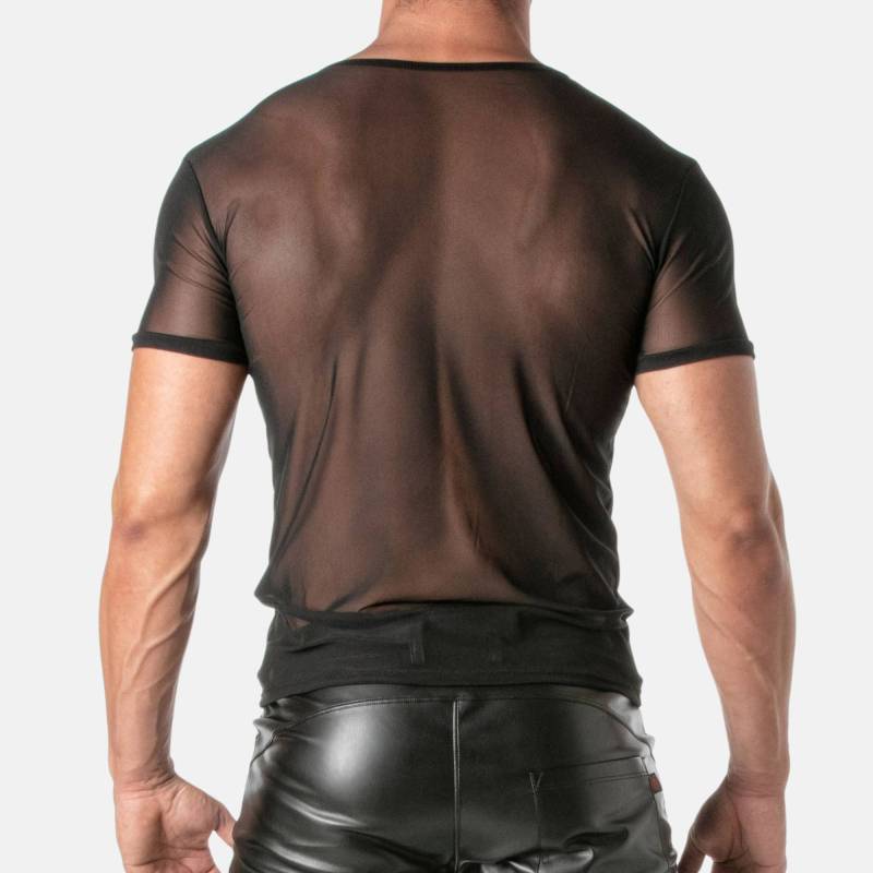 Ce t-shirt mesh TOF Paris mêle sensualité, style et confort. Son tissu transparent léger met subtilement en valeur la silhouette, offrant un look audacieux mais toujours élégant. La coupe ajustée épouse le torse sans le compresser, tandis que le col rond classique apporte une touche intemporelle qui s’intègre à tous les styles clubwear et fetish.