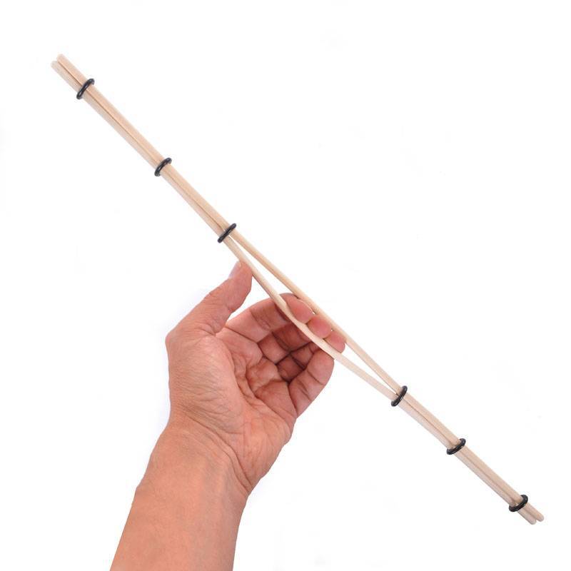 Thai Stick simple : 2 longues tiges de bois (rotin de Manille) reliées entre elles par 6 anneaux en latex noir et spécialement conçues pour la poitrine