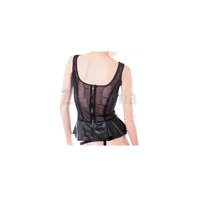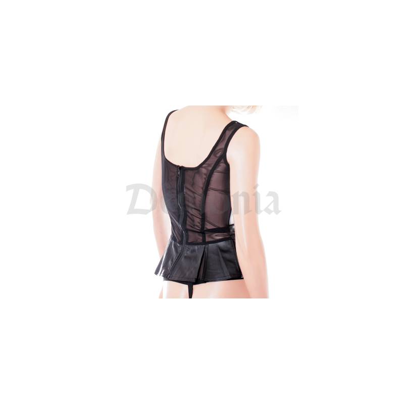 Joli petit top en simili cuir sur l'avant et résille transparente sur l'arrière.