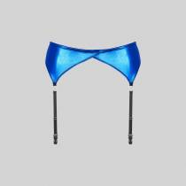 Porte jarretelles en micro fibre bleu métallisé brillant