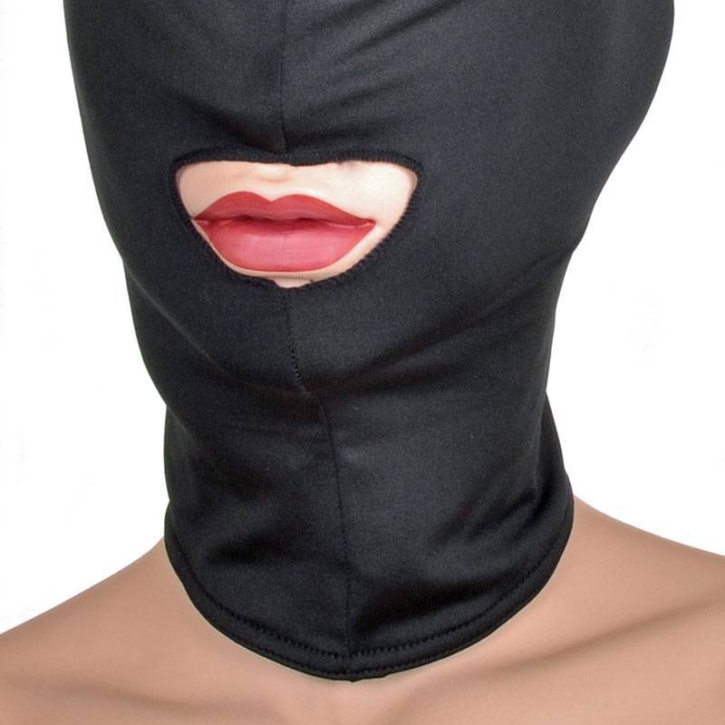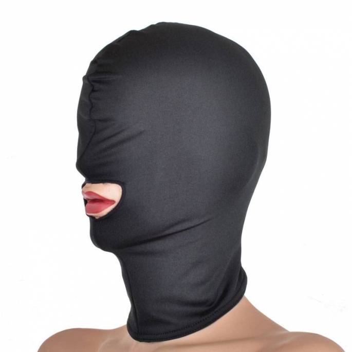 Passamontagna SM in tessuto elasticizzato con apertura per la bocca. Morbido, traspirante ed elastico, si modella alla forma del viso offrendo comfort e sensualità. Ideale per giochi BDSM intensi.