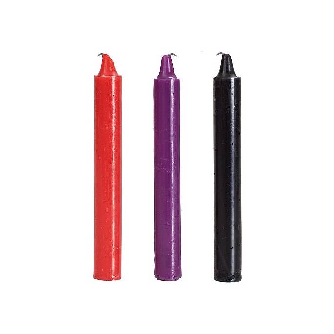 Set di candele da gioco in cera SM Doc Johnson a bassa temperatura. Perfette per esplorare il BDSM con sensualità e sicurezza. Sono incluse le candele rosse, nere e bianche.